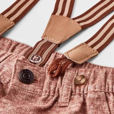 - 2pc outfit set includes short-sleeve flannel bodysuit and jasper pants with suspenders