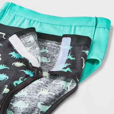 The Boys’ Adaptive 2pk Dino Briefs from Cat & Jack™ in Green is going to keep your little champ stocked up in his inner wear department. These boys’ briefs have a classic mid-rise fit that provides plenty of back coverage without showing over the waistband of his pants. Made from cotton and spandex, these briefs are soft and breathable for all-day comfort. In addition to the comfort of these Cat & Jack™ boys’ adaptive 2pk dino briefs, he’ll love the fun patterns on one of the briefs along with the solid-colored brief.