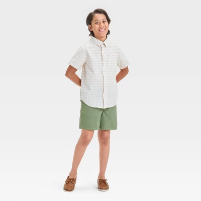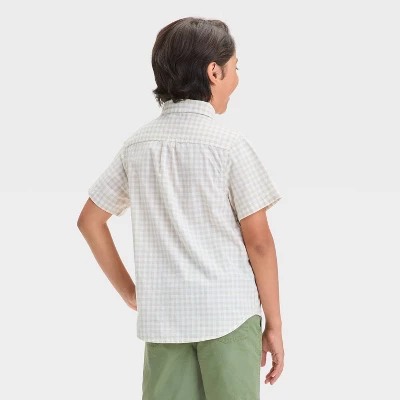 This Short-Sleeve Gingham Poplin Button-Down Shirt from Cat & Jack™ will be your kid’s wardrobe staple for a variety of occasions. Tailored in an oversized fit, the short-sleeve shirt is made from cotton slub fabric to bring comfort to their day. It features a front button placket, flat seams, a patch pocket on the chest and a back yoke for a classic touch. Featuring a stylish gingham pattern in beige, the short-sleeve shirt is easy to pair with a variety of pants and shorts for versatile wear.