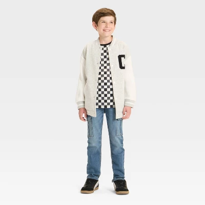 Revamp their casual wardrobe with this Varsity Captain’s Jacket from Cat & Jack™. Made from cotton-recycled polyester blend fabric, this captain’s jacket features a front snap closure for ease of wear. Tailored in an oversized fit, this jacket boasts long sleeves with ribbed cuffs and hem for a snug fit. Plus, it comes with two side pockets to stash their caps, gloves and more.