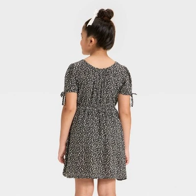 Give their casual wardrobe a fresh update with this Short-Sleeve Woven Dress from Cat & Jack™. Made of 100% rayon, this short-sleeve dress is designed with a round neckline and boasts bow detailing at the sleeves. It features a full elastic waistband for a snug, stay-put fit and comes with two side pockets to stash their on-the-go essentials. They can pair it with their favorite shoes and accessories to complete the look.