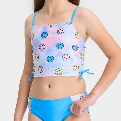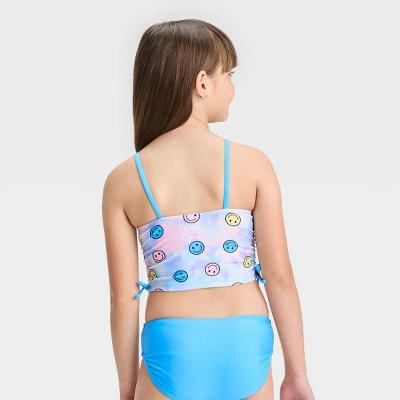 Whether they’re catching waves or building sandcastles, this ‘Stay Smiley’ Midkini Swimwear Set from Cat & Jack™ takes them through water adventures in comfy style. The two-piece printed swimwear set includes a pullover midkini top and a matching bikini bottom, both covered in smiley pattern for a cute, coordinated look. Made from soft, stretchy fabric with elastic at the leg opening for flexible movement, this pull-on swim set offers comfort throughout their swim adventures, and it also helps keep them shielded from the sun with the UPF 50+ rating.