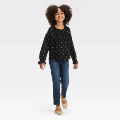 Girls' Long Sleeve Gold Foil Bow Woven Shirt – Cat & Jack™ Black