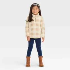 Toddler Girls’ Checkered Quarter Zip-Up Jacket – Cat & Jack™ Beige