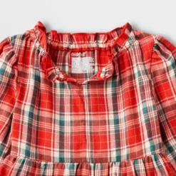 Toddler Girls' Adaptive Abdominal Access Long Sleeve Plaid Tiered Woven Dress – Cat & Jack™ Red