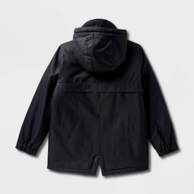 Keep them super warm this winter season with this Solid Playground Parka Jacket from Cat & Jack™. Made from lightweight water- and wind-resistant fabric with full lining and a ventilating design, this solid hooded parka jacket helps keep them dry, warm and comfy at all times. The front full-length zipper and snap closures allow for easy layering and help keep out the cold, while the two front pockets offer space for carrying small essentials. They can layer this long-sleeve jacket over tees, sweaters or sweatshirts with a range of bottoms for versatile wear.