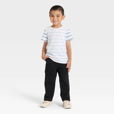Elevate their casual wardrobe to the next level with these Cargo Pants from Cat & Jack™. Made of soft, stretchy fabric with recycled polyester-cotton blend fabric lining, these mid-rise pants provide all-day comfort for their little adventures. The flexible drawstring closure offers a snug fit, while the baggy legs bring a streetwear look. Tailored in a loose fit, these cargo pants have two side and cargo pockets and a back pocket for stashing various everyday essentials.