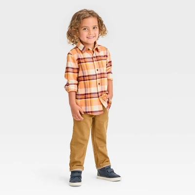 This Long-Sleeve Flannel Shirt from Cat & Jack™ makes a comfy addition to your little one’s closet. Featuring an allover checkered pattern, the button-down shirt is made from cotton material to help them stay comfortable throughout the day. It has a front button-down placket, long sleeves with buttoned cuffs and a back yoke for classic touches, while the regular fit with a shirttail hemline that hits below the waist allows for comfortable wear and easy layering.