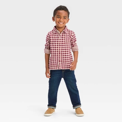 This Long-Sleeve Flannel Shirt from Cat & Jack™ makes a comfy addition to your little one’s closet. The reversible flannel shirt can be worn two ways thanks to the burgundy-and-white plaid pattern that reverses to stylish stripes, and its cotton construction helps your kid stay comfortable throughout the day. It has a front snap button placket, long sleeves and a back yoke for classic touches, while the regular fit that hits below the waist allows for comfortable wear and easy layering.