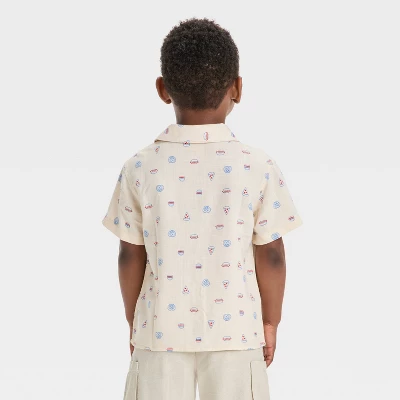 Your kid will be ready for the festive fun in this Short-Sleeve 4th of July Food Button-Down Shirt from Cat & Jack™. Made of rayon-lyocell blend fabric, this short-sleeve shirt features allover cute food prints in tones of red and blue for a fun look. Tailored in a regular fit, this shirt features a camp collar with a button-down front, and the front pocket provides space to stash their small toys.