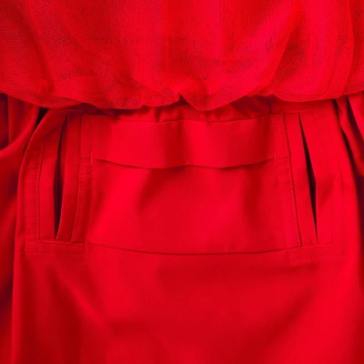 - Red A-line dress with tulle and sequin details
