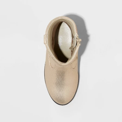 These Addie Glitter Zipper Western Boots from Cat & Jack™ will add a gorgeous sparkle to your toddler’s footwear collection. These medium-width boots feature an almond-toe design with one-inch heels, along with comfy lining and insoles that help them walk in comfort. The faux-leather upper with glitter embellishment, ornate stitched detailing and a curved topline add stunning appeal. A side zipper completes the design with easy on/off and a secure fit.