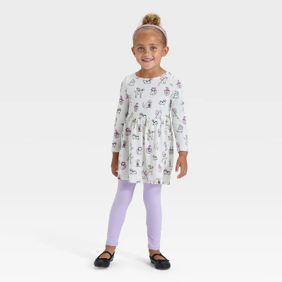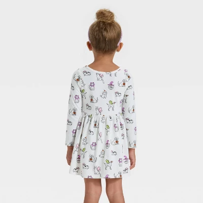Prep their wardrobe for the Halloween season with this Halloween Long-Sleeve Animals Dress from Cat & Jack™. Fashioned in an at-knee length, this long-sleeve dress has allover print of flying dogs, pumpkins, sheep and more for a playful look. Crafted from cotton-recycled polyester blend fabric for all-day comfortable wear, the dress gently flares at the waist and sports a pullover style for easy changing and dressing.