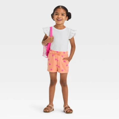 Your little one ready to kick back, run or play in cute style with these Daisy Knit Shorts from Cat & Jack™. The mid-rise shorts are made from midweight French terry fabric to keep your child in absolute comfort no matter where the day takes them, and they’re decorated with daisy florals popping in pink from the peach-orange backdrop for a delightful look. The full elastic waistband with a front drawstring provides a secure fit, while the side pockets give them a spot for holding their favorite toys.